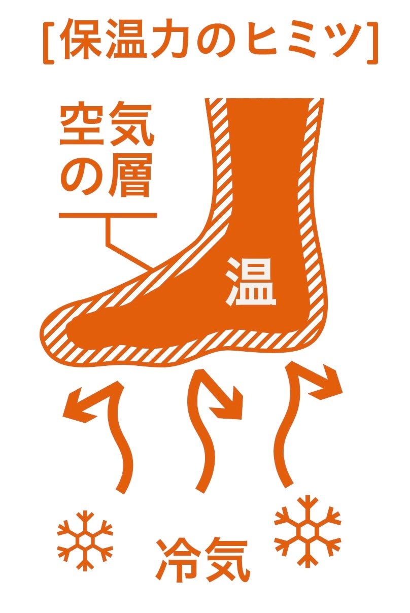 温かい空気の層を作り出すことによって、熱を逃さず、さらに冷気から足元を守ります。