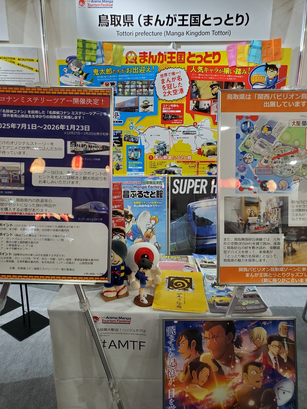 鳥取県ブースではまんが王国とっとりのキャラクターを中心にしたパネルやパンフレット等によってその魅力を伝えるほか、県内観光の情報も発信しています。