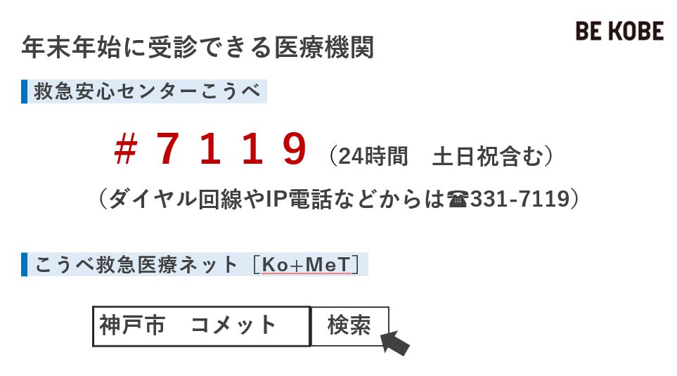 ・こうべ救急医療ネット[Ko+MeT] 神戸市 コメット 検索