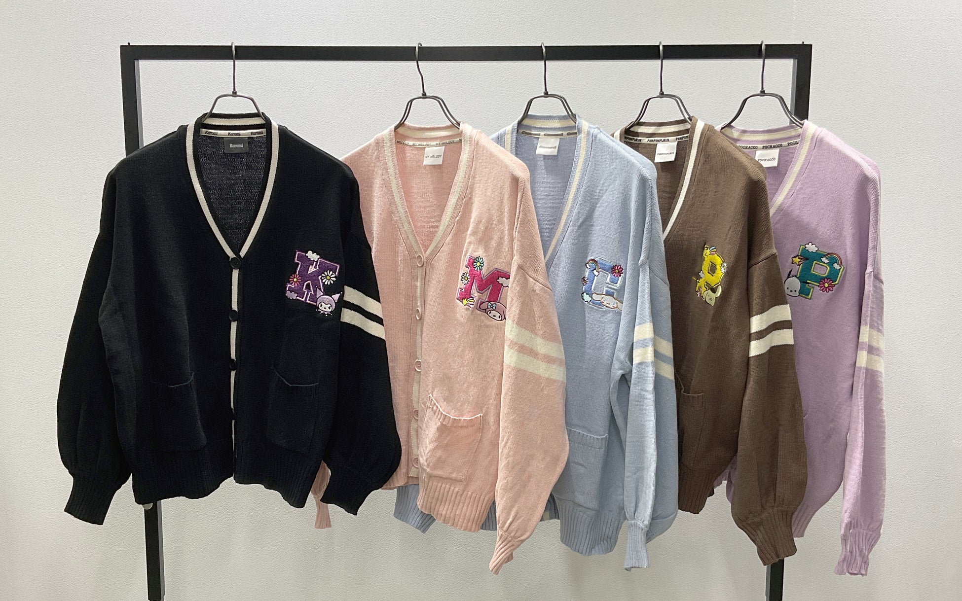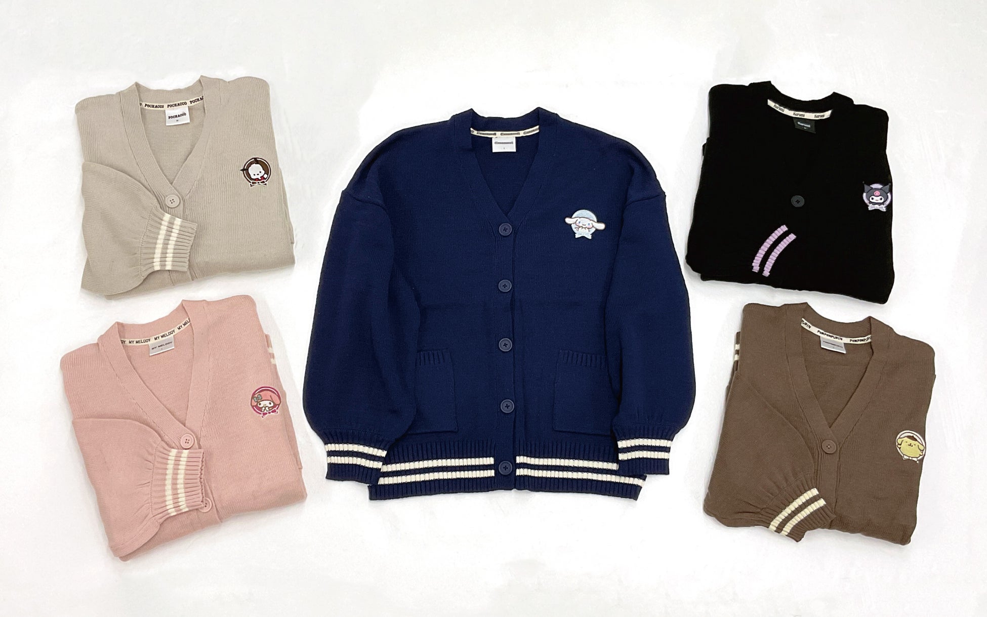制服コーデに欠かせないニットカーディガン。フロントに施された愛らしいサンリオキャラクターと裾と袖口部分のラインデザインが特徴です♡