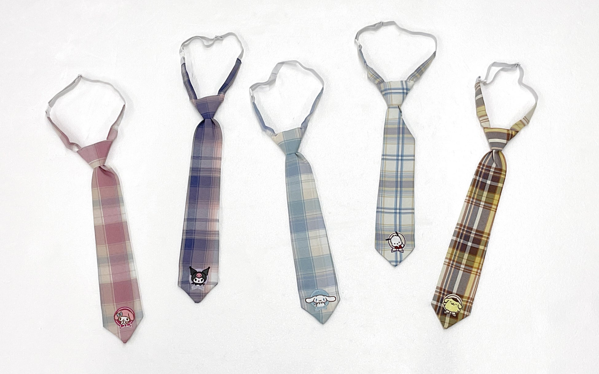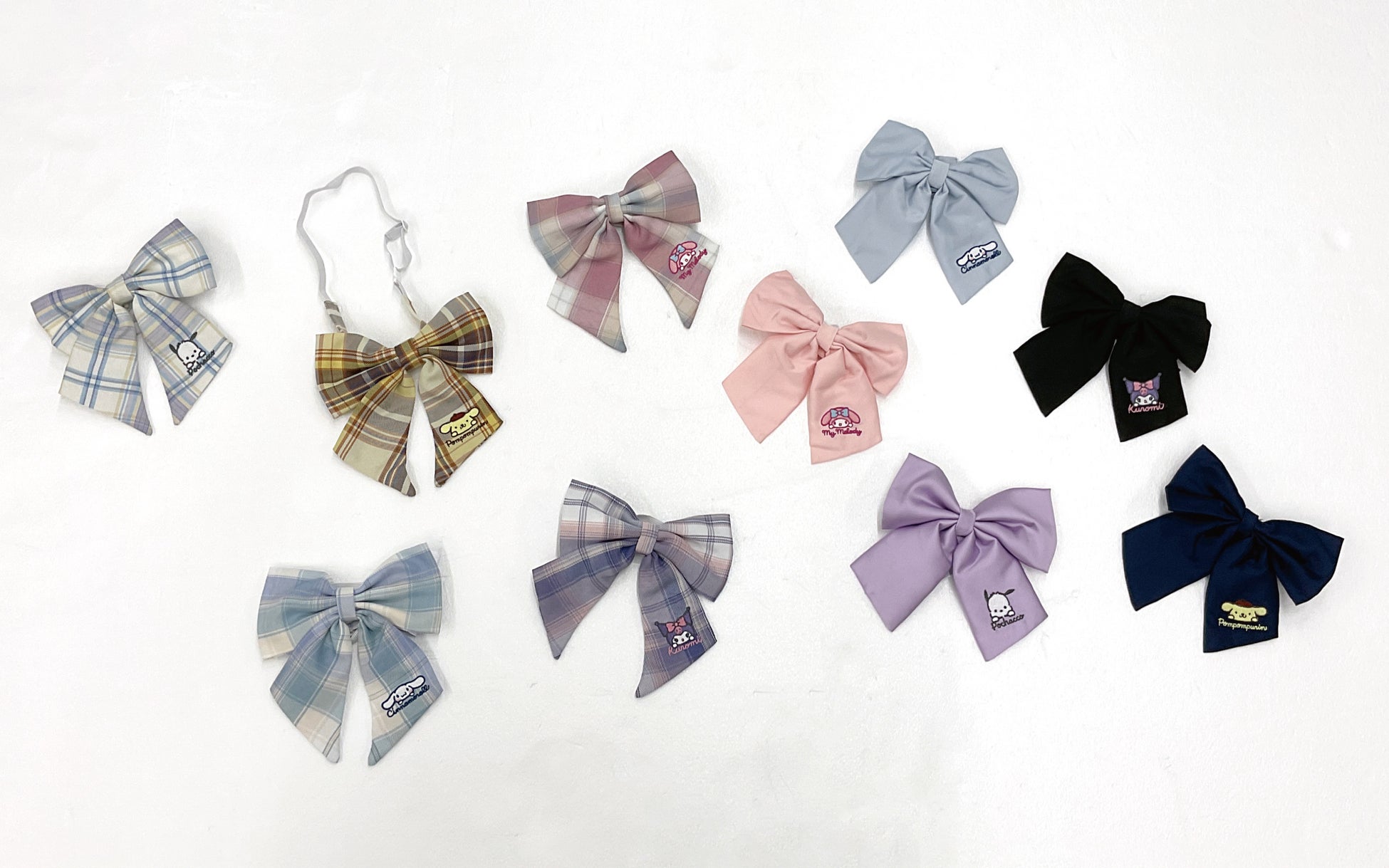豊富なカラーバリエーションと、サンリオキャラクターのワンポイント刺繍が可愛い制服リボン。首元はもちろん、スクールバッグにもおそろいでつけたいアイテムです♡
