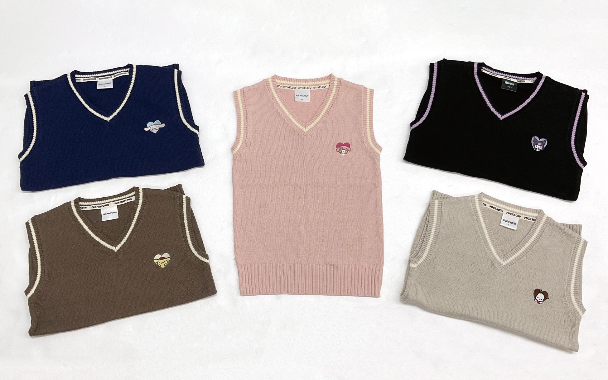 キャラクターごとにイメージされたライン配色が特徴のニットベスト♡いつものトップスに加えるだけで制服コーデを格上げしてくれます!