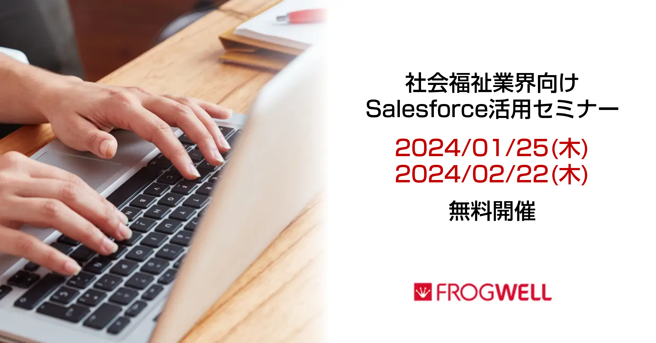 社会福祉業界向けSalesforce活用オンラインセミナーをデータ・プロセスコンサルティング会社のフロッグウェル(株)が1月25日(木)、2月22日(木)に無料開催