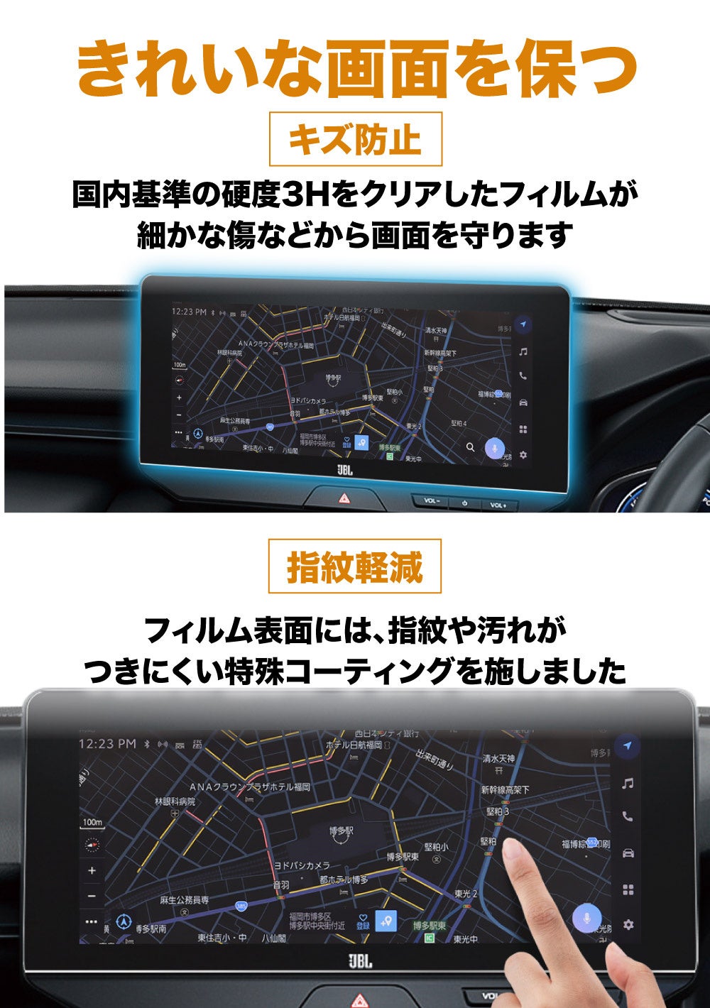 反射率1.1%の低反射フィルムなので、反射や映り込みを軽減し、明るい車内でも画面が見やすくなります。