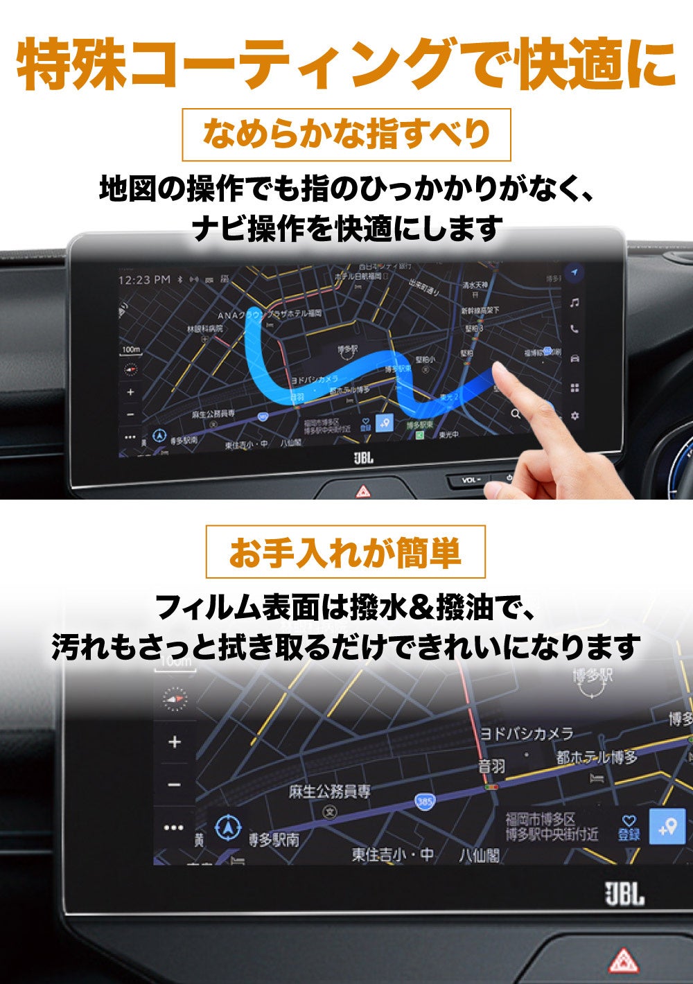 特殊コーティングにより、地図の操作でも指のひっかかりが少なく、ナビ操作を快適にします。
