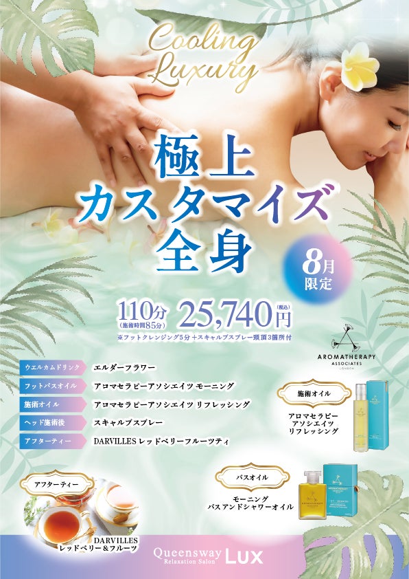 残暑のお疲れを集中ケアQueensway LUX「極上カスタマイズ全身コース」を8月限定で提供開始