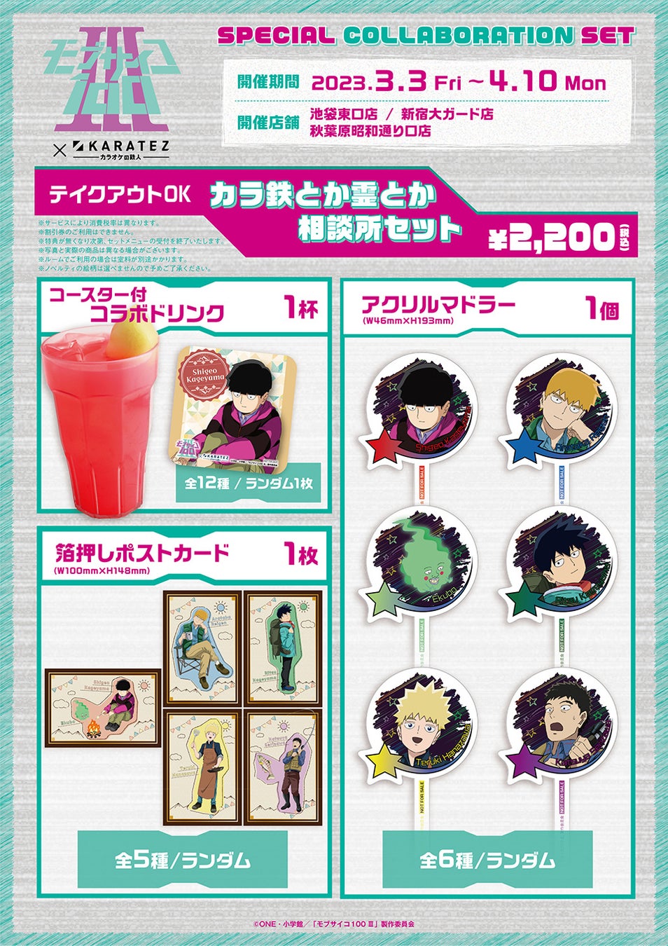 2023年3月3日から開催!TVアニメ『モブサイコ100 Ⅲ』×カラオケの鉄人コラボレーションキャンペーンのお知らせ