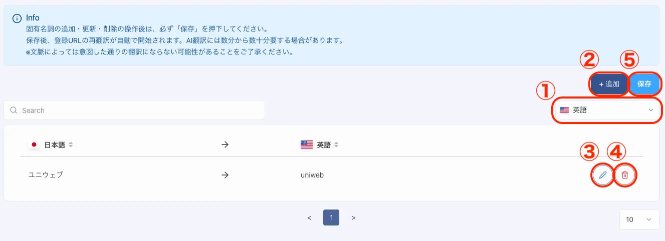 【ユニウェブ】AI多言語翻訳オプションに固有名詞登録機能を追加