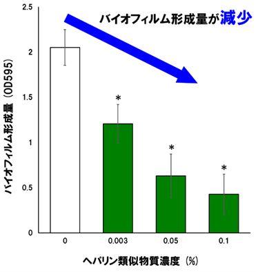 図2 ヘパリン類似物質のバイオイルム形成抑制効果