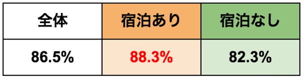 帰省時に宿泊しない方に比べて宿泊する場合の方が手伝い率が6%高い結果でした。