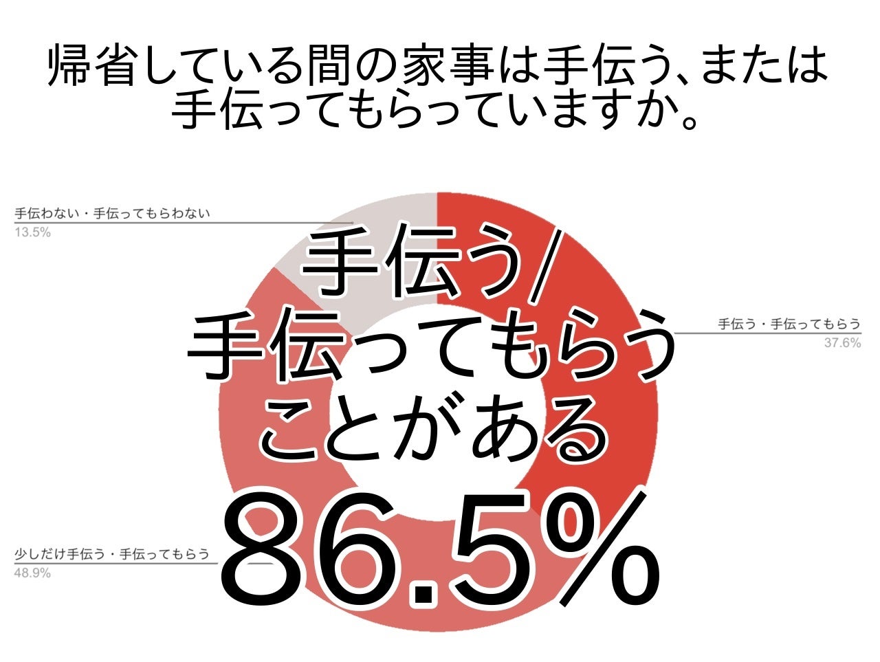 アンケートでは次に、帰省している間の家事は手伝う、または手伝ってもらっているか尋ねました。