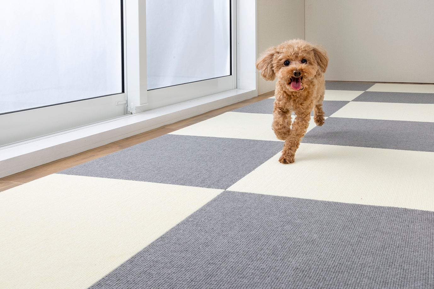 今回、山口県山口市の山口きらら博記念公園で行われる「わんだふる山口2024」は、中・四国地方最大級のドッグフェスです。サンコーのブースでは、お手入れ簡単で自由にデザインをアレンジできる裏面吸着素材のタイルマットや、廊下に敷き詰められるロングサイズのマットなどを販売いたします。