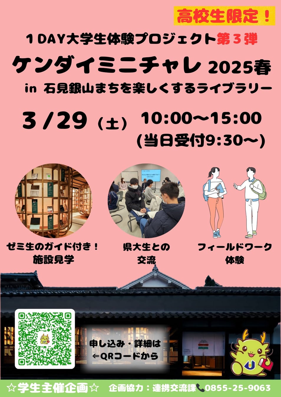 本学学生による企画イベント「ケンダイミニチャレ2025春」を3月29日(土)に開催します!【島根県立大学】