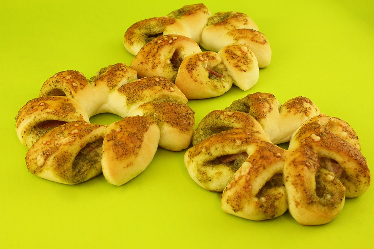 バジルマヨとベーコンを巻き込んだ生地にチーズをトッピングし焼き上げました。食べ応えのあるもっちりとした生地にバジルとベーコンの塩気が口の中に広がる、満足感のある一品。