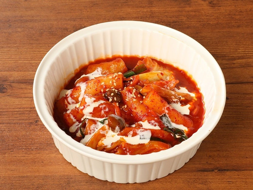 甘辛いトッポギに生クリームを混ぜれば、ロゼ色のグラデーションが完成!コク深い旨辛ソースが絡んだもちもちの韓国餅をお楽しみいただけます。