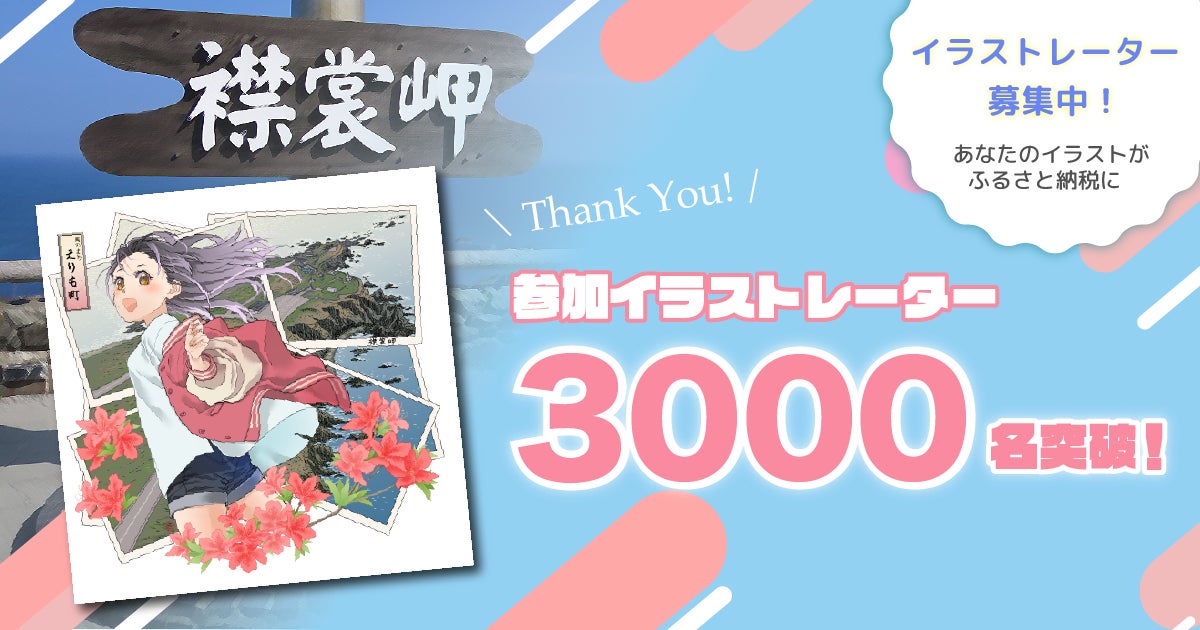 株式会社あるやうむ(本社:北海道札幌市、代表取締役:畠中博晶、以下「あるやうむ」)が提供する「イラストレーターふるさと納税」へのイラストレーターの参加人数が3000名を超えました。イラストレーターふるさと納税は、「好きなイラストレーターに作品のオーダーができる」サービスで、北海道えりも町の返礼品になります。オーダーはあるやうむが提供するポータルサイトにて受け付けます。イラスト作品はNFT形式で送付され、自分だけの特別な作品を手に入れることができます。