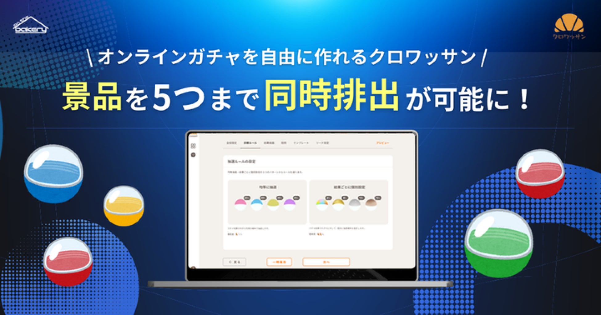 オンラインガチャを自由に作れるクロワッサン!景品を5つまで同時排出が可能に!