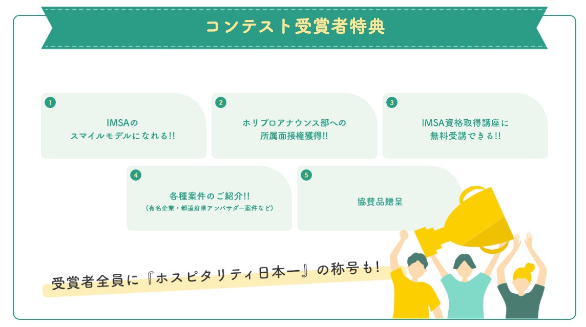 大手芸能プロダクション監修「第1回スマイルコンテスト」では3月3日17時より2次審査を開始!コンテスト受賞者には『ホスピタリティ日本一』の称号と豪華特典も!