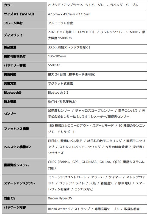 ■Redmi Watch 5の製品特長