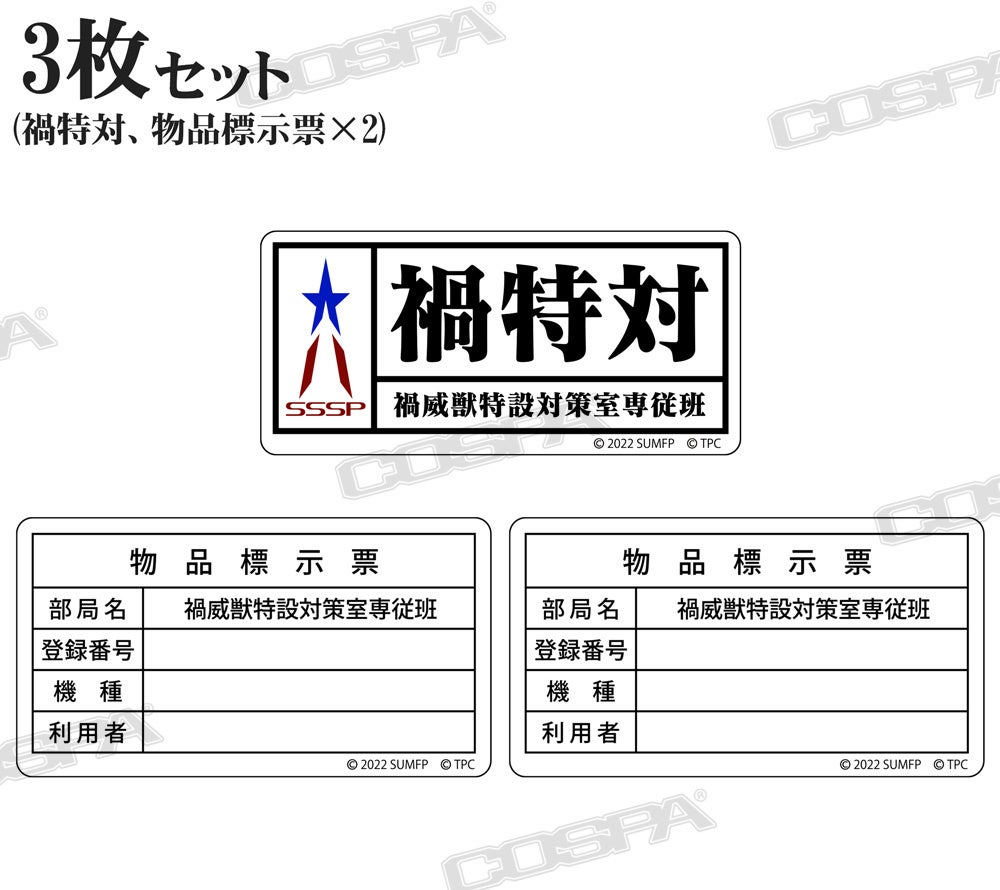 サイズ:(約)縦2.8cm×横6cm(禍特対1枚)、(約)縦3.2cm×横5.9cm(物品標示票2枚)