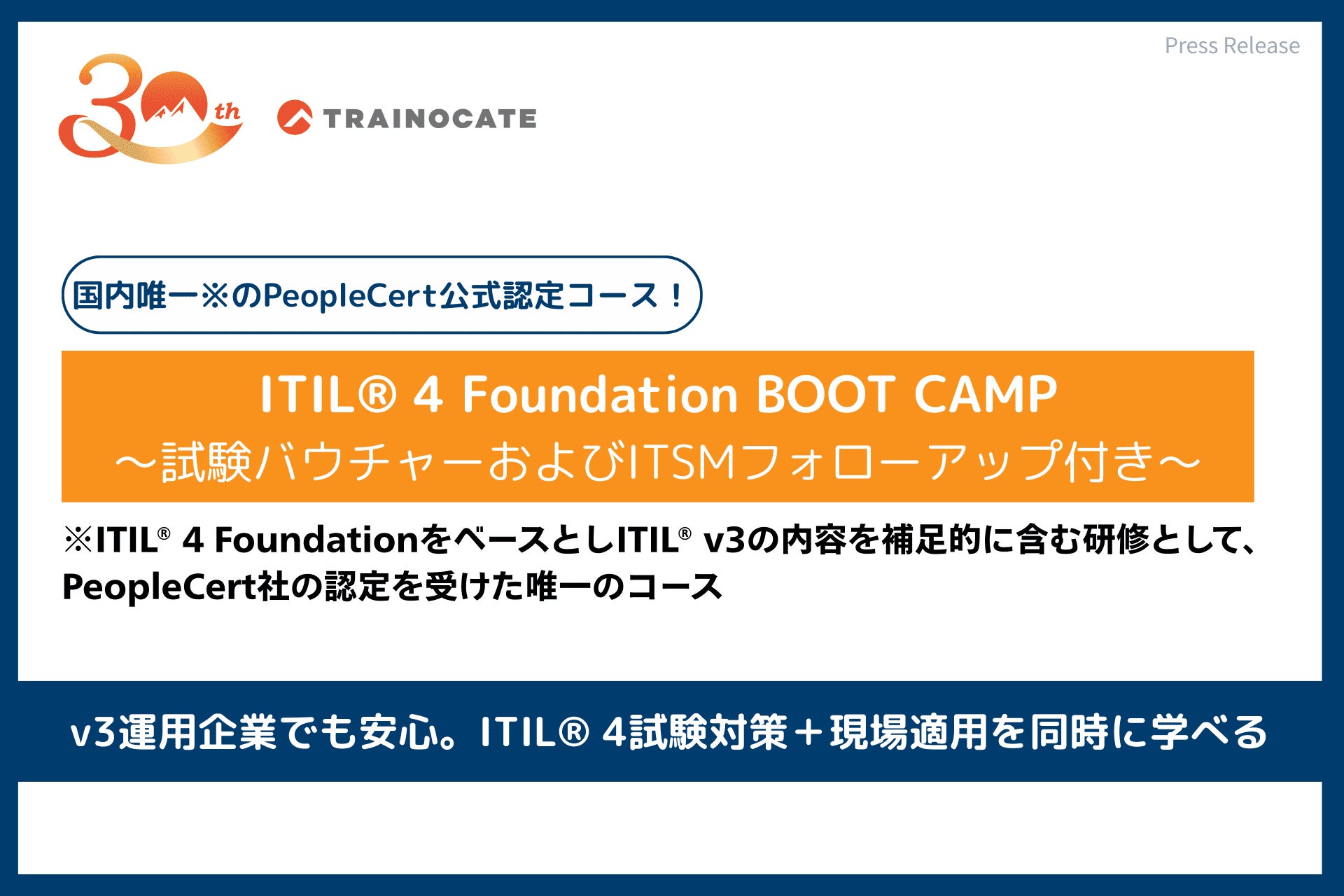 人材育成のトレノケート株式会社(本社:東京都新宿区、代表取締役社長:早津 昌夫)は、ITIL® 4の資格取得と、現場での適用力を重視した新コース「ITIL® 4 Foundation BOOT CAMP(試験バウチャーおよびITSMフォローアップ付き)」(以下、本コース)の提供を開始しました。
