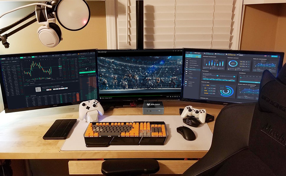 BMAX B5 Proは、HDMI端子、mini DP(4K/60Hz)端子、Type-C端子で3台の4Kディスプレイに対応し、その組み合わせに制限はありません。