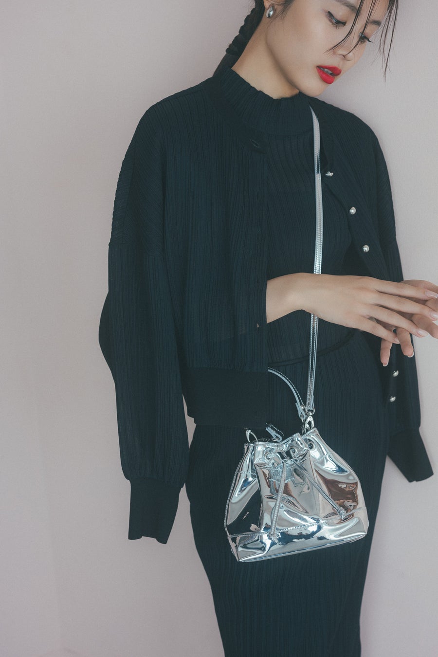 ・ニットリブのアクセント、コロンとしたボタン使いが特徴。
