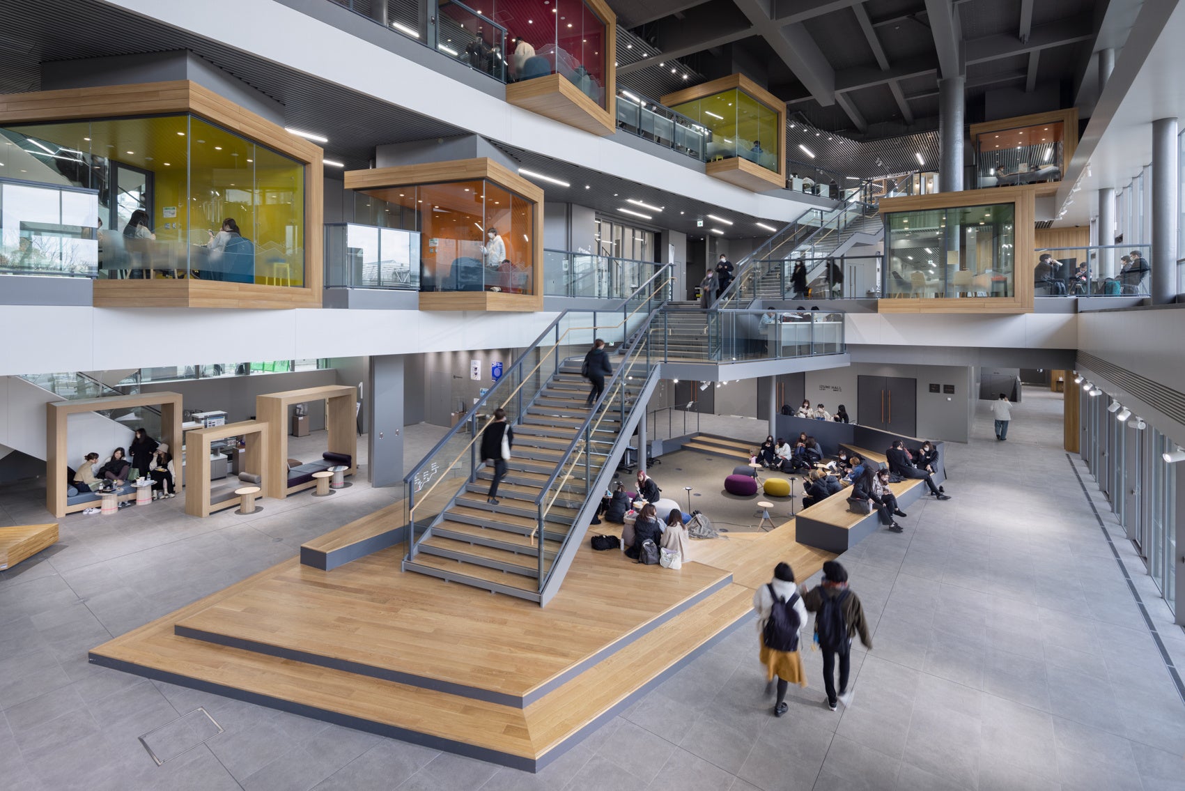 和泉ラーニングスクエアは、明治大学の創立140周年記念事業として2022年3月に竣工しました。「アフターコロナの大学のキャンパスに学生が求める多様な居場所の可能性を、建物内外の空間で実現している」として、今回、学校施設(大学)では唯一の受賞となりました。