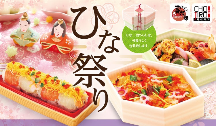 株式会社フーズネット(本社・⼤阪府⼤阪市、代表取締役社⻑・加藤誠)が運営する「活⿂廻転寿司にぎり⻑次郎」 「廻転寿司CHOJIRO京都」は、ひな祭り向けのちらし寿司を期間限定で販売いたします。