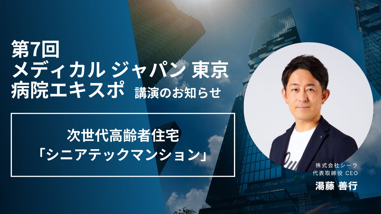 株式会社シーラテクノロジーズ (NASDAQ:SYT、以下「シーラテクノロジーズ」)の子会社である、株式会社シーラ(本社:東京都渋⾕区、代表取締役:湯藤善⾏、以下「シーラ」)は、2024年10月9日(水)から11日(金)まで、幕張メッセにて開催される「第7回 メディカル ジャパン 東京」内の病院エキスポに出典し、次世代型高齢者住宅「シニアテックマンション」を紹介いたします。また、シーラ代表取締役CEOの湯藤善行が、10月10日(木)にアクティブシニアのための住宅ソリューションとして、「シニアテックマンション」ついて講演いたします。