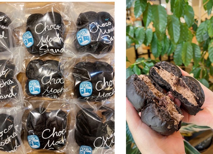 ダークココアが練りこまれたフワフワな生地に自家製エスプレッソとクーベルチュールを使ったチョコモカクリームを挟んだクリームサンド。
