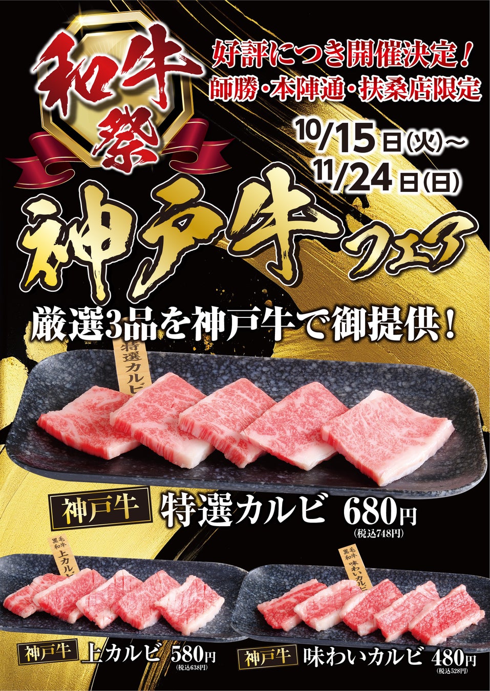 あみやき亭本陣通店・師勝店・扶桑店 限定イベントとして【神戸牛フェア】を毎日開催!