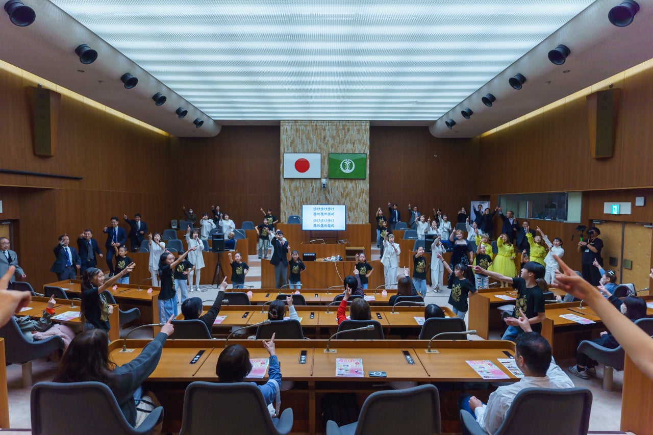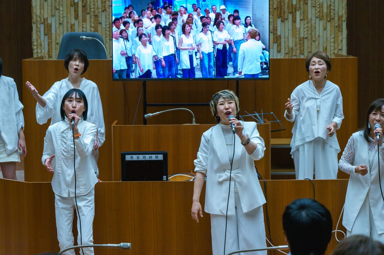 プログラムの最後には、出演者全員と議員、来場者がひとつになって歌い、感動のフィナーレを迎えました。