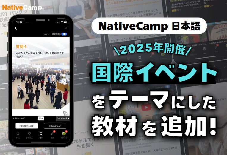 株式会社ネイティブキャンプ(本社:東京都渋谷区、代表取締役社長:谷川国洋)が提供するオンライン日本語会話サービス『Native Camp Japanese』では、このたび、このたび、人気教材「デイリートピック」に2025年開催の国際イベントをテーマにした教材を追加しました。