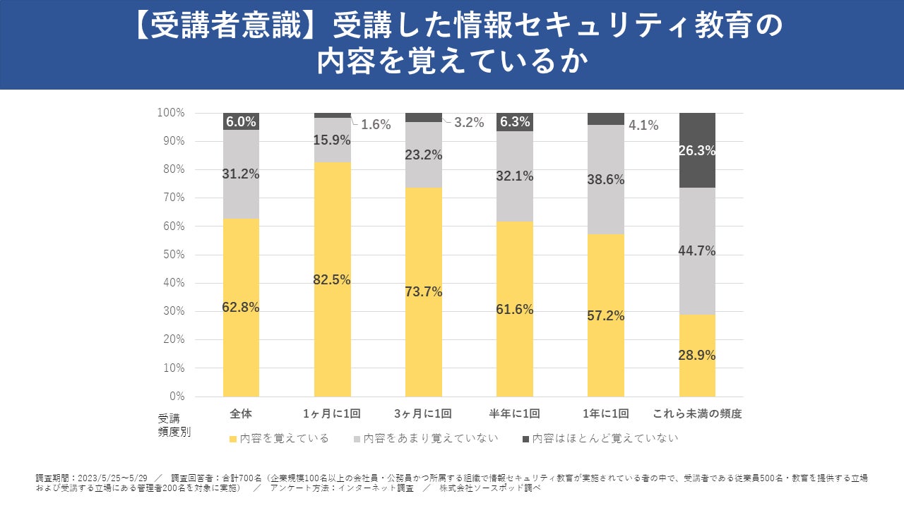 ・知識定着・発生した問題の解消率は、受講者の教育頻度の高低が大きく影響。