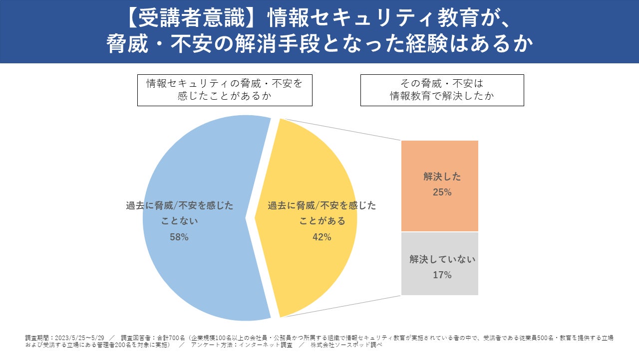 ・受講者が感じた情報セキュリティ上の問題の解決に、情報セキュリティ教育が役立ったと回答した層は全体の25%どまり。