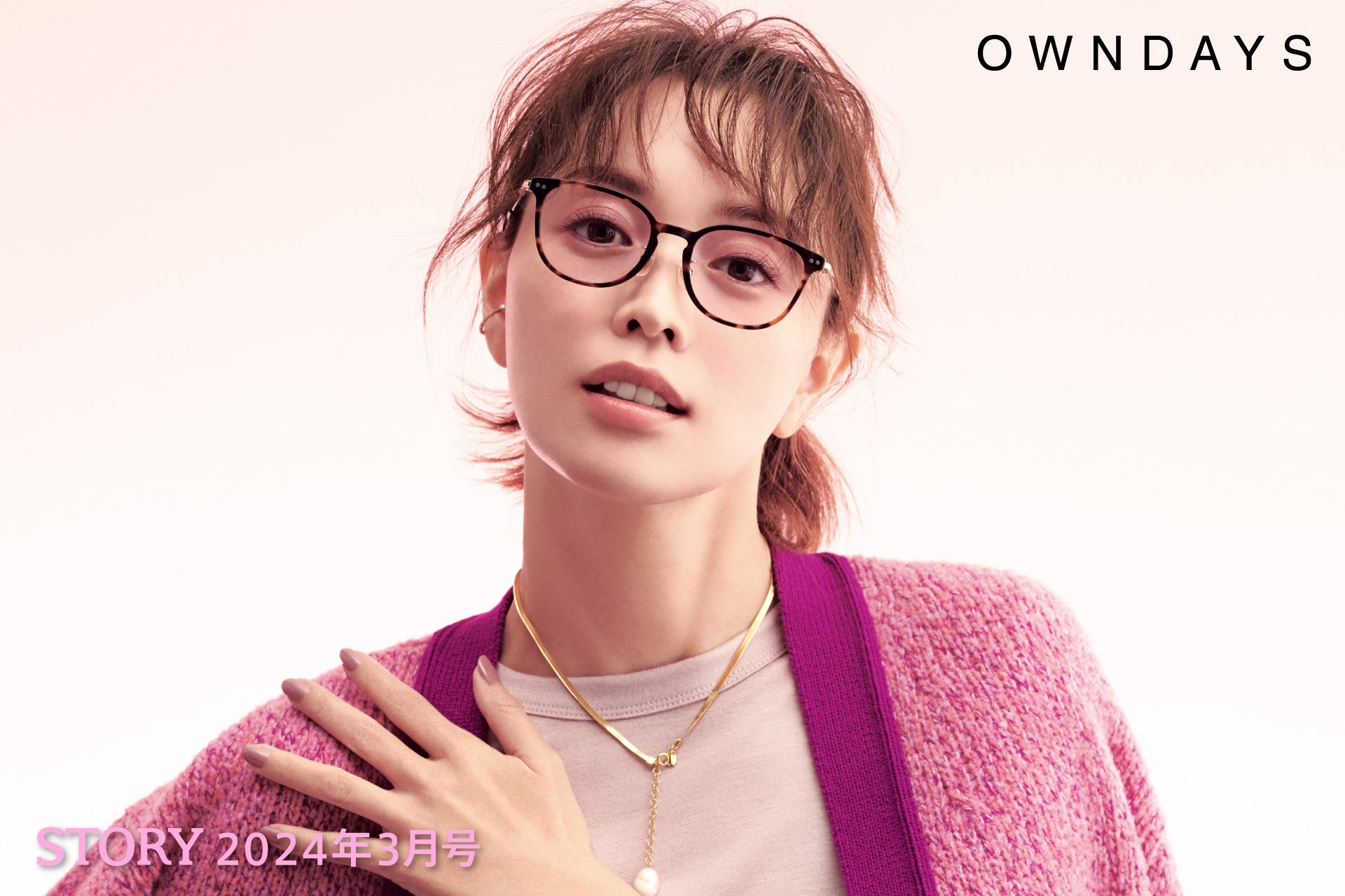 【OWNDAYS|オンデーズ】蛯原友里と忙しい朝のカラーレンズ。地味見え、メイクする時間がない!をメガネで解決。「STORY 2024年3月号」掲載