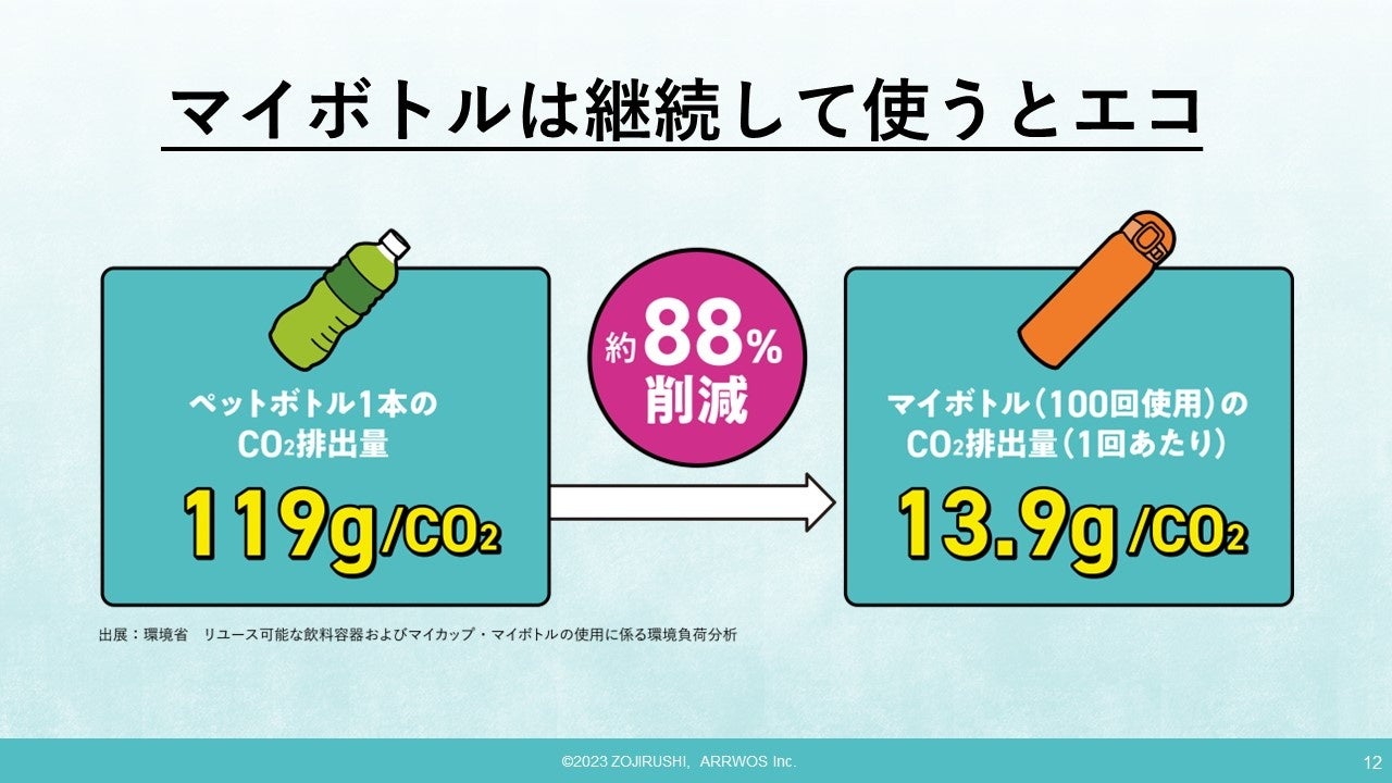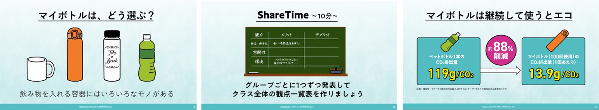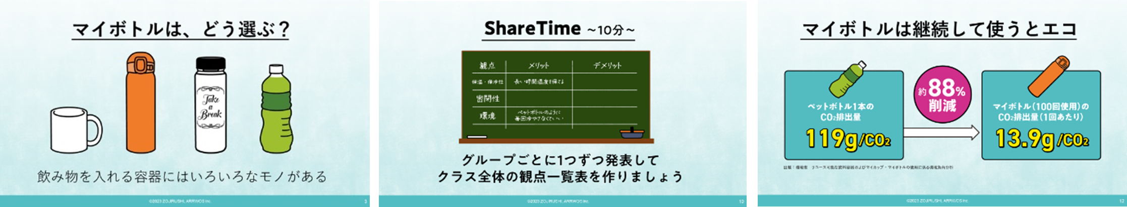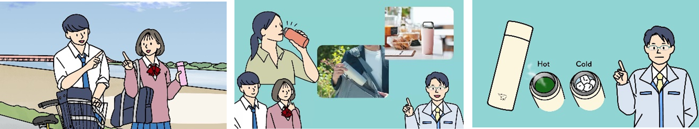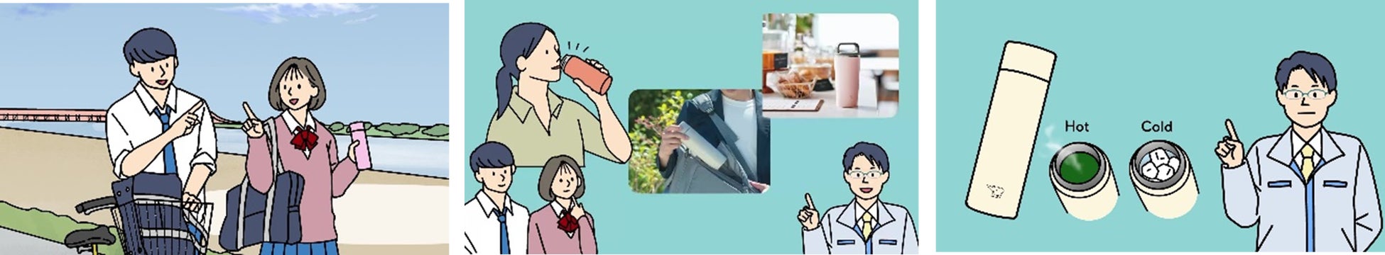 マイボトルの選び方、魔法瓶構造のマイボトルを持つメリットなど、身近な話題からディスカッションを重ねることで、環境問題やサステナブル活動について改めて考えてもらう構成です。