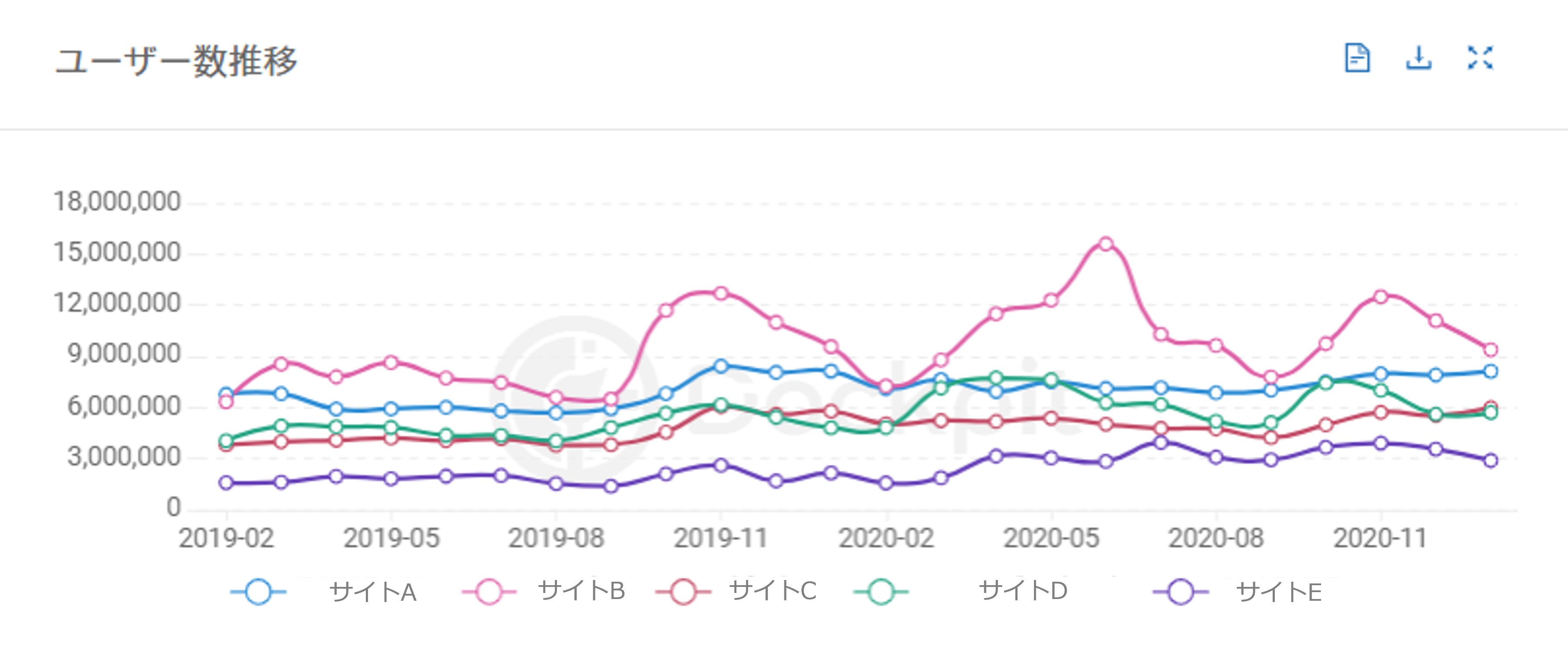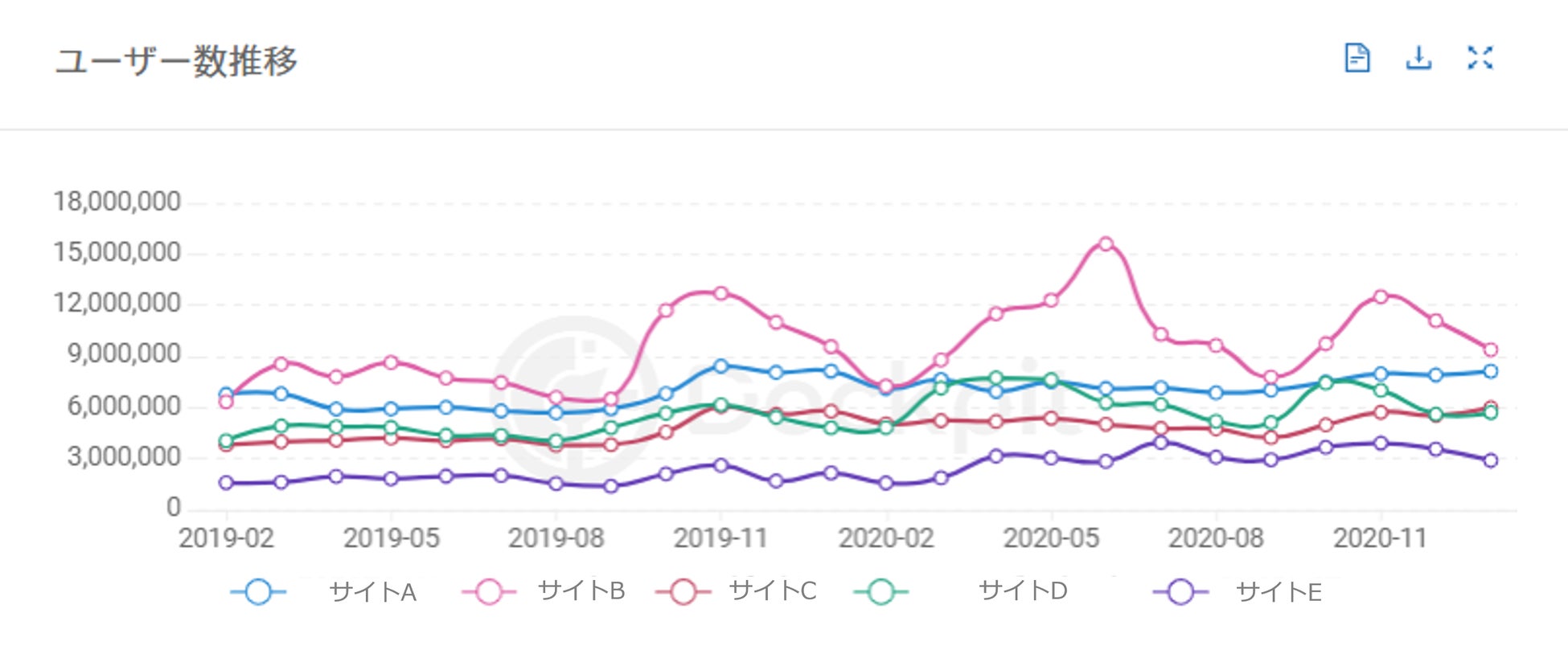 コロナ禍も2年が経過し、前年度データでは平常時のデータとして扱えず比較分析が難しくなってきています。そこでこのたび、「Dockpit」で分析できるデータ期間を、2年(26ヵ月)から3年(38ヵ月)に大幅拡大いたしました。3年前のデータまで遡ることによって、自社・競合調査、業界分析、トレンド把握において、コロナ禍前と比べてどのような変化が起こっているのかより長期的目線で分析をすることができます。