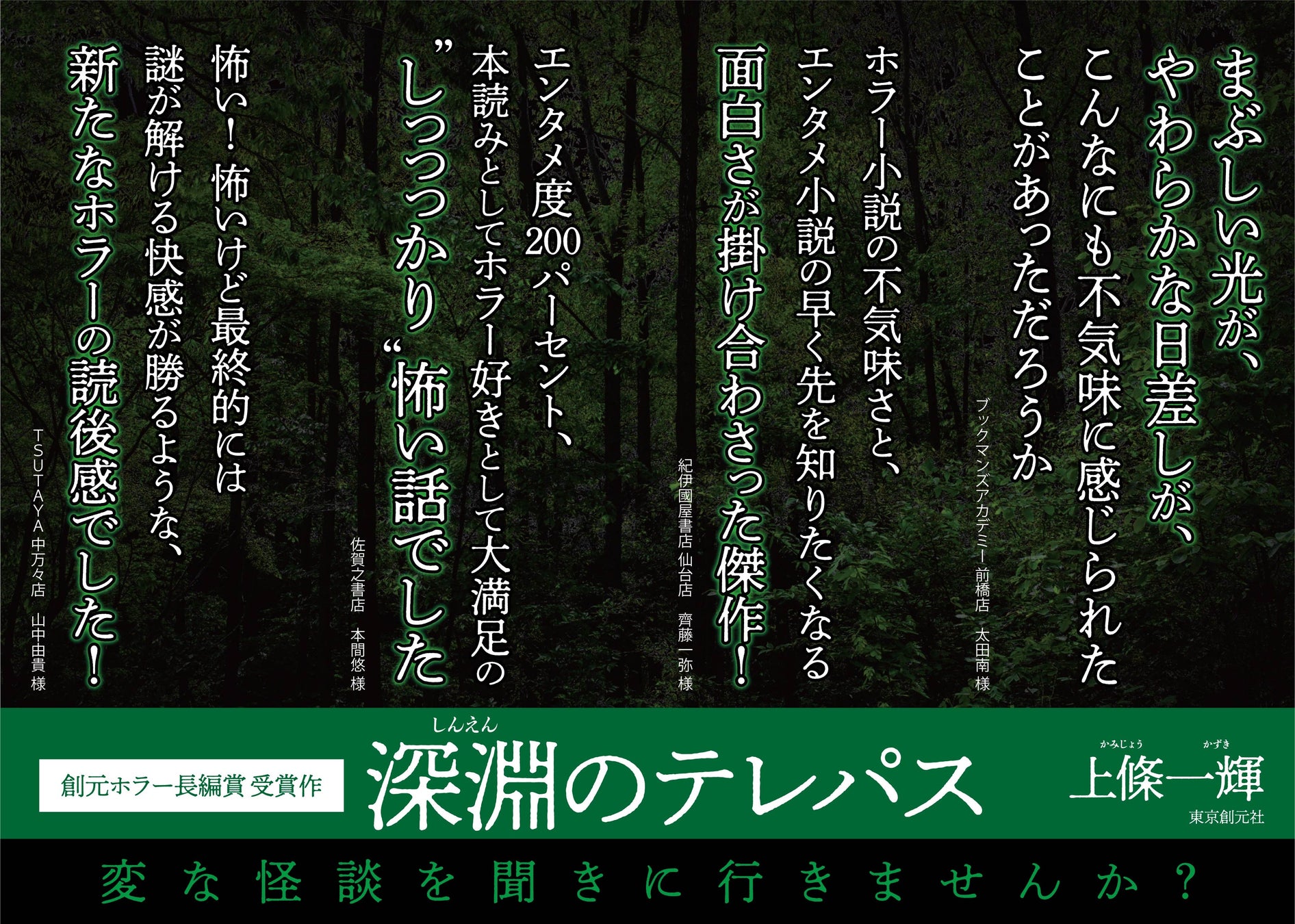 選考委員、書店員大絶賛!!創元ホラー長編賞受賞作『深淵のテレパス』(上條一輝)が遂に刊行!