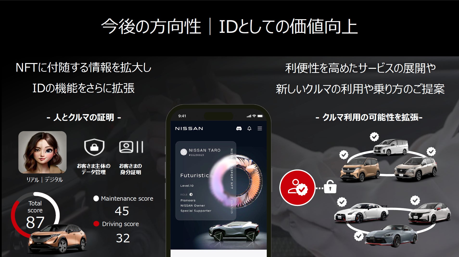 日産は今後も、web3テクノロジーを活用し、より利便性の高いサービス創出や、他企業とのコラボレーションを行い、お客さまにご満足いただける体験の提供を目指してまいります。