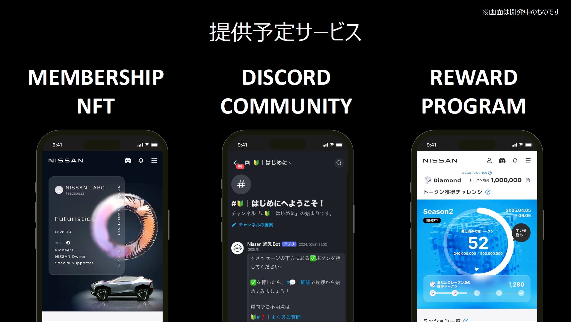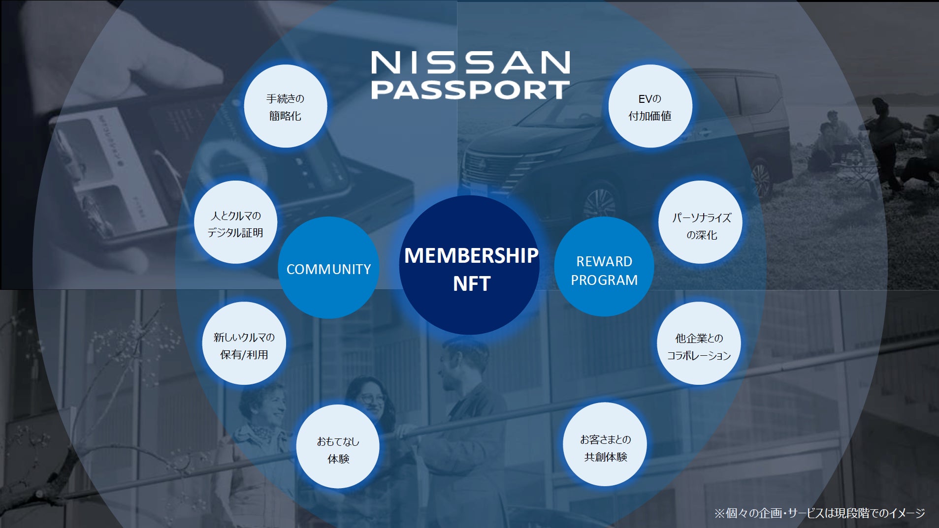 本格稼働に先立ちNISSAN PASSPORT BETAでは、メンバーシップNFT*2と独自web3ウォレットの提供、コミュニティの開設、体験型リワードプログラムを展開予定で、今後はお客さまの反響をもとに、さらなるサービスの拡大を参加者と共に検討してまいります。