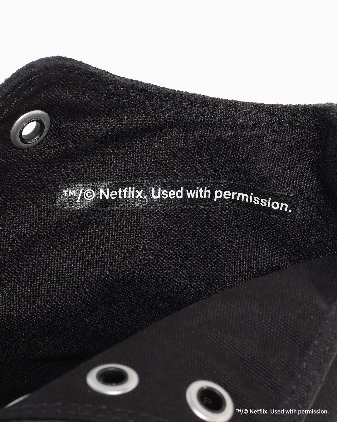 さらに、アッパーはオールブラックながら、スエード・キャンバス・スムースレザーとの異素材を組み合わせ、幅広いジャンルの作品を提供するNetflixの多様な世界観を表現しました。