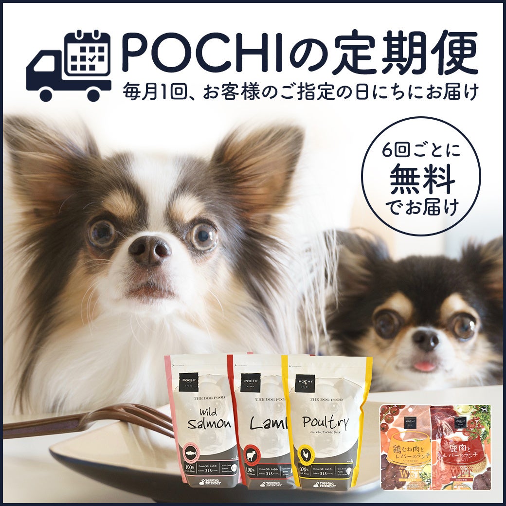 なお、定期便の対象商品は「POCHIザ・ドッグフード ベーシック シリーズ」、「POCHIザ・ドッグフード ウェット シリーズ」です。
