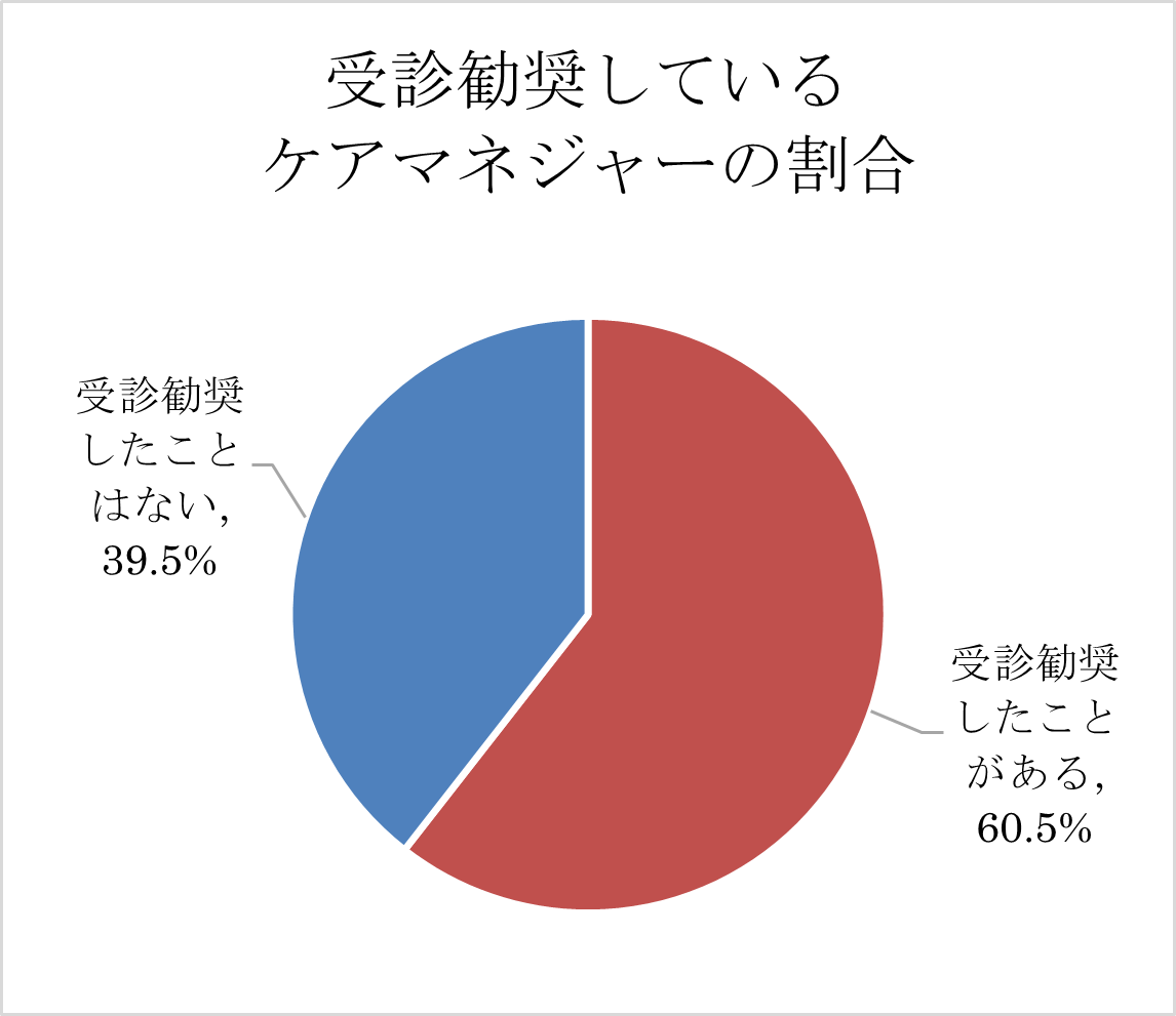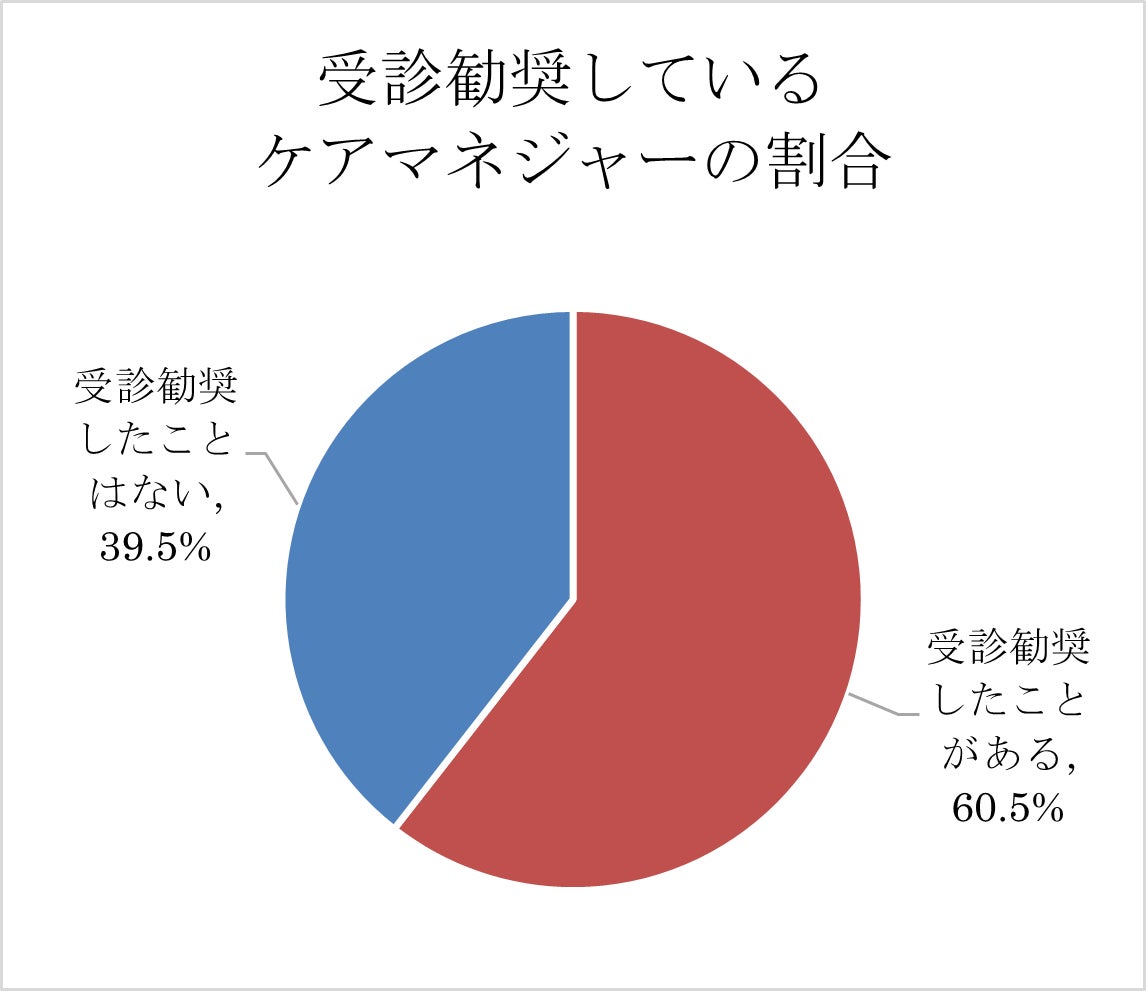 調査の結果、担当利用者に皮膚の問題で受診勧奨しているケアマネジャーの割合は60.5%いることが分かりました。