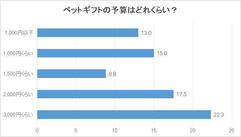 ペットギフトの予算として最も多かった回答は「3,000円くらい」で、1,000~3,000円がボリュームゾーンでした。