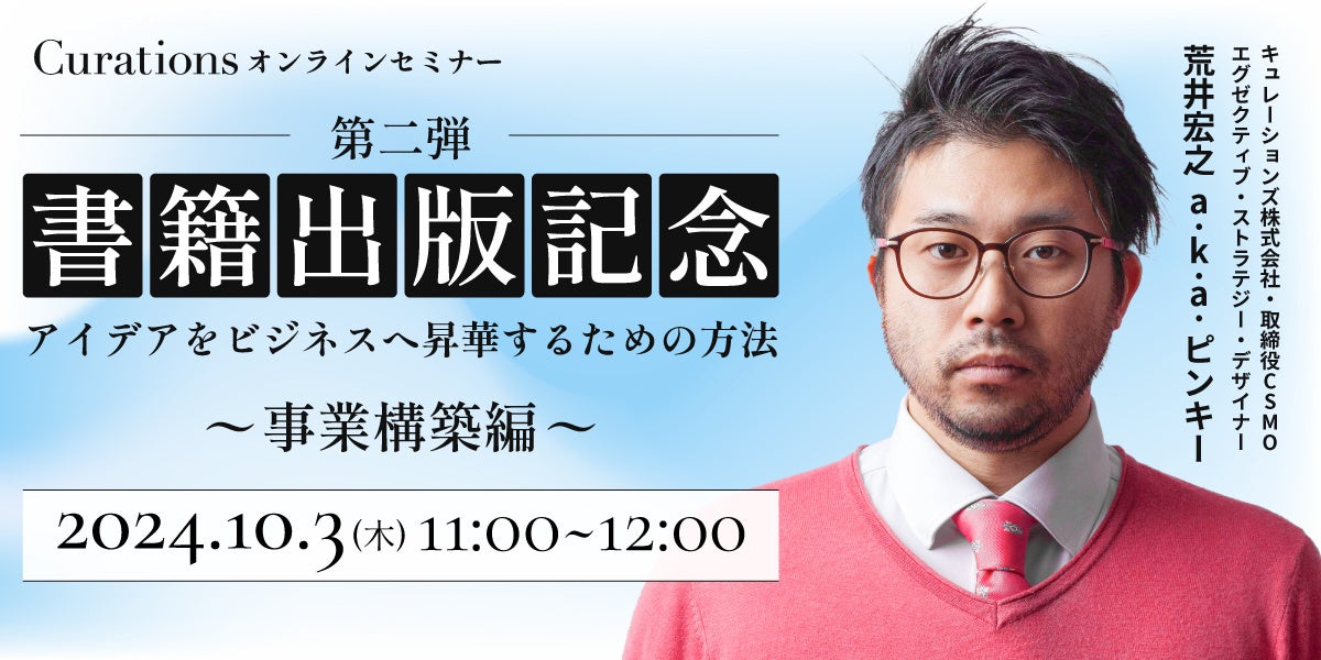 【10月3日(木)11:00~ 無料オンラインセミナー】書籍出版記念!第二弾アイデアをビジネスへ昇華するための方法〜事業構築編〜