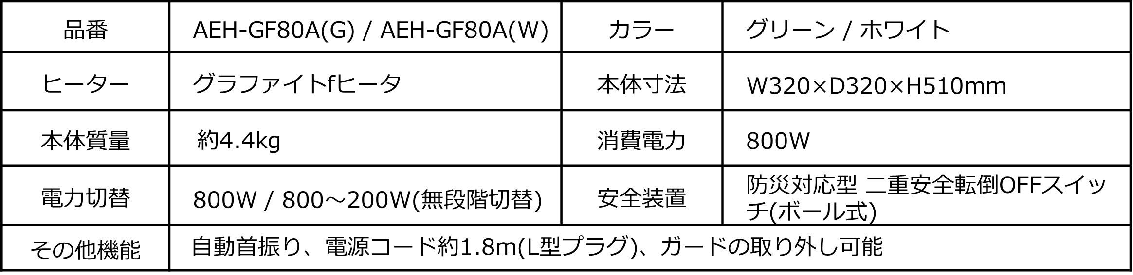 ・自動首振り機能:左右最大約70°動き、広範囲にわたり効率よく温めます。