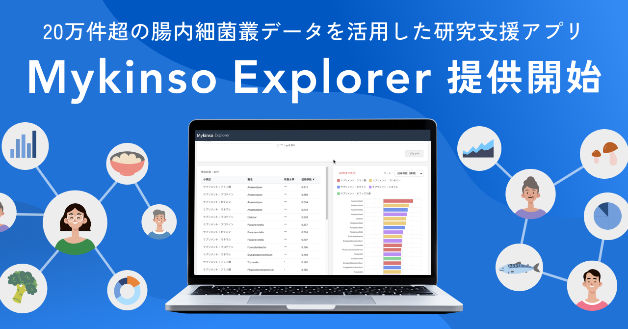 20万件超の腸内細菌叢データを活用した研究支援アプリ「Mykinso Explorer (マイキンソーエクスプローラー) 」提供開始
