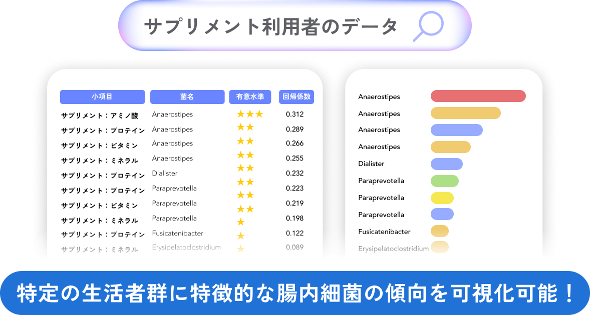 自社検査不要で、大規模菌叢データに基づく仮説探索